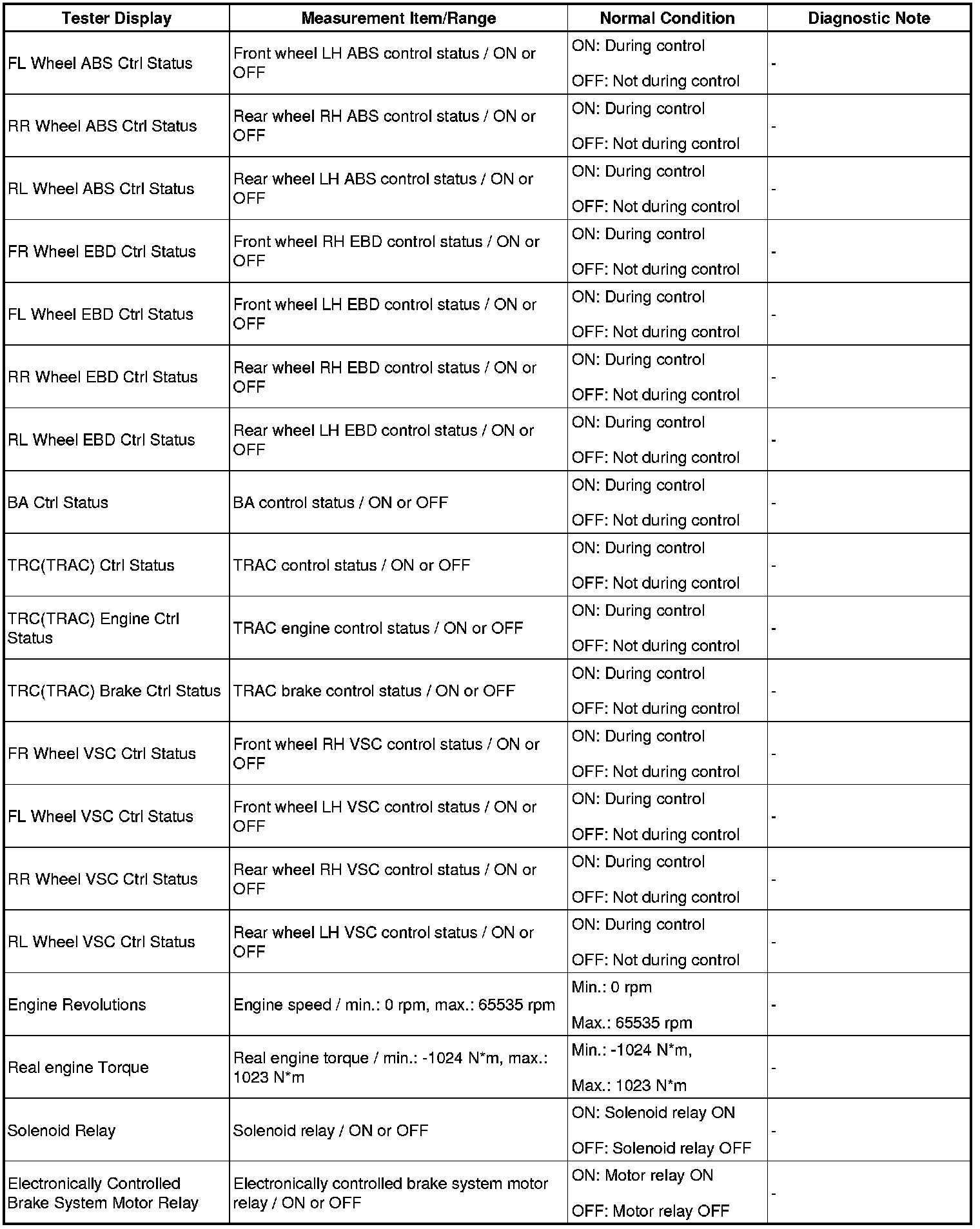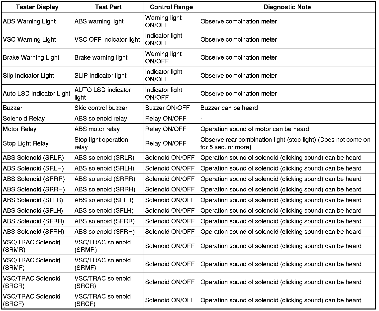 - The Active Tests of the ABS solenoid, ABS motor relay, ABS warning light and BRAKE warning light are available when the vehicle is stopped.