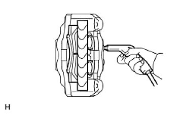 (e) Temporarily install the 2 disc brake pistons that were removed. Then install the disc brake pad to the side in which the 2 disc brake pistons were temporarily installed.