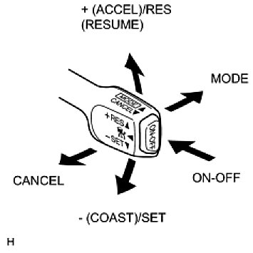 (b) Check the cruise control main switch using the Data List function in the Techstream (ON-OFF, CANCEL, - (COAST)/SET, + (ACCEL)/RES (RESUME), and MODE).