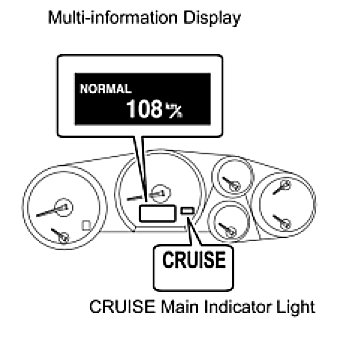 (b) Turn the cruise control main switch on. Then push the main switch to MODE for 1 second or more to change to the constant speed control mode. Check that "NORMAL" is indicated on the multi-information display.