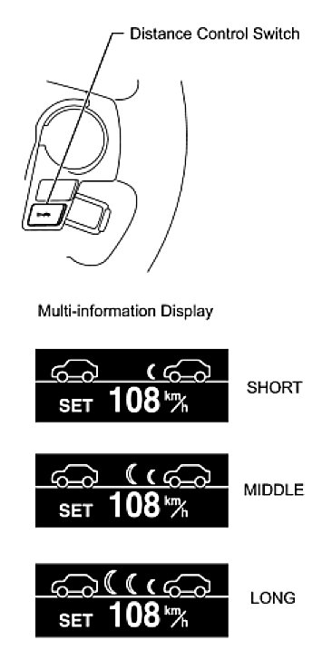 (d) Check that the indication of the vehicle-to-vehicle distance, which is shown on the multi-information display on the combination meter, changes from long to middle to short in that order.