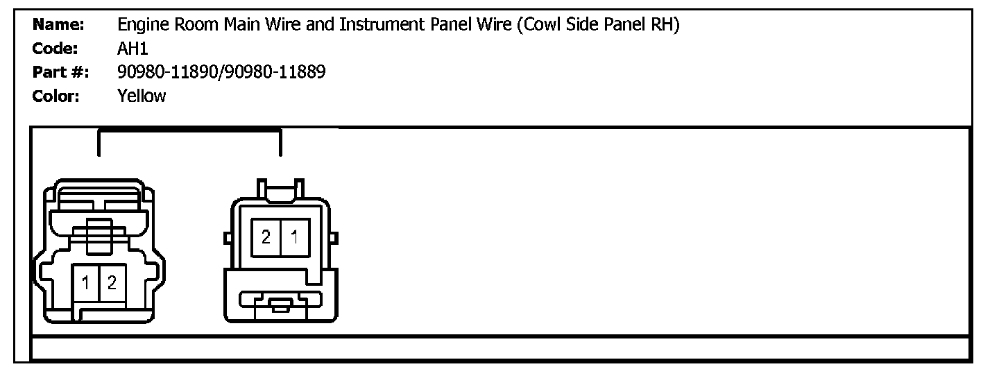 AH1 (Engine Room Main Wire And Instrument Panel Wire (Cowl Side Panel RH)):