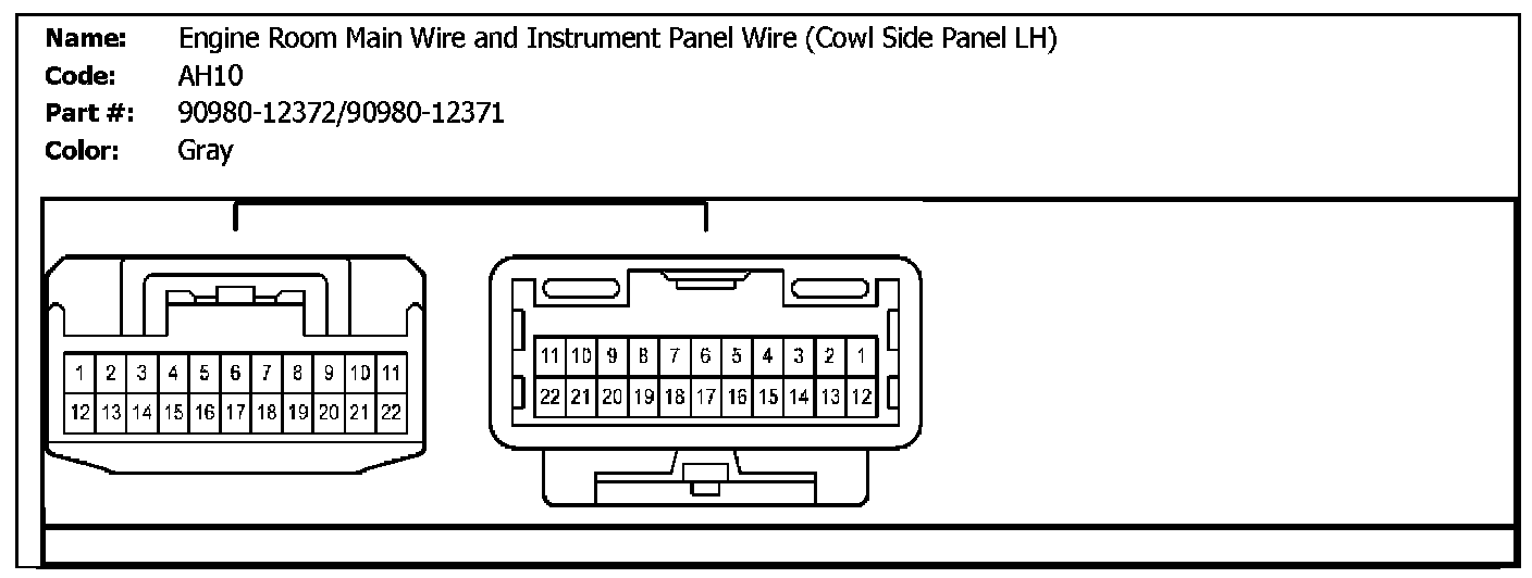 AH10 (Engine Room Main Wire And Instrument Panel Wire (Cowl Side Panel LH)):