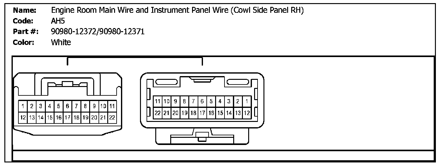 AH5 (Engine Room Main Wire And Instrument Panel Wire (Cowl Side Panel RH)):