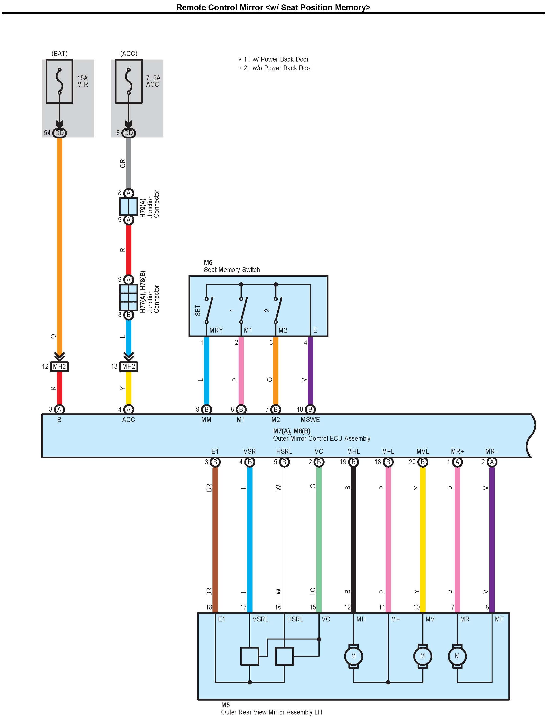 Remote Control Mirror <w/ Seat Position Memory> Part 2:
