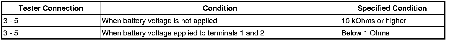 If the result is not as specified, replace the relay.