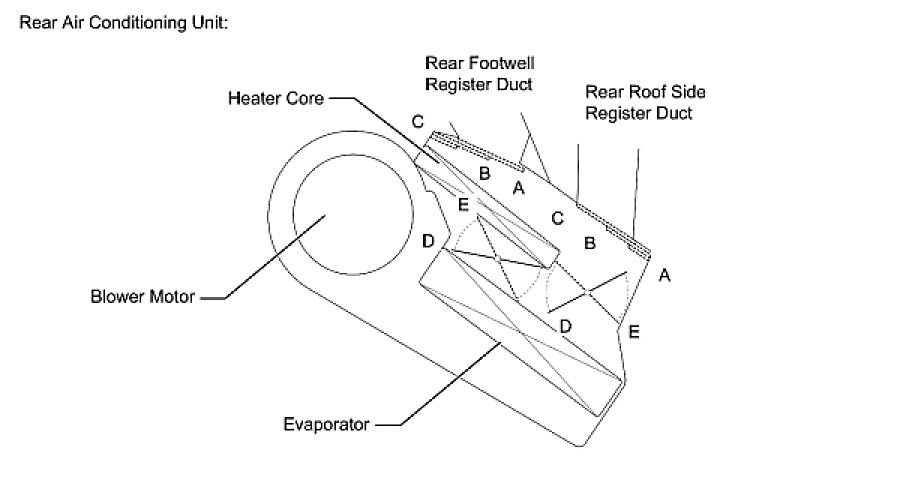 (b) Mode Position and Damper Operation (for Rear Air Conditioning Unit)