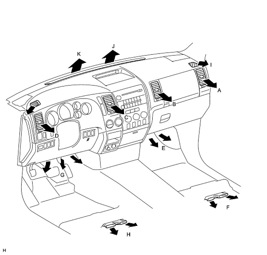 (a) Air Outlets and Airflow Volume (for Front seat)