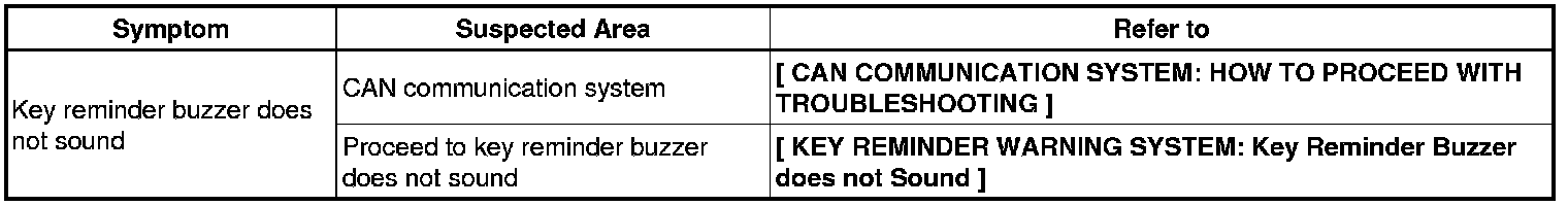 DOOR LOCK: KEY REMINDER WARNING SYSTEM: PROBLEM SYMPTOMS TABLE