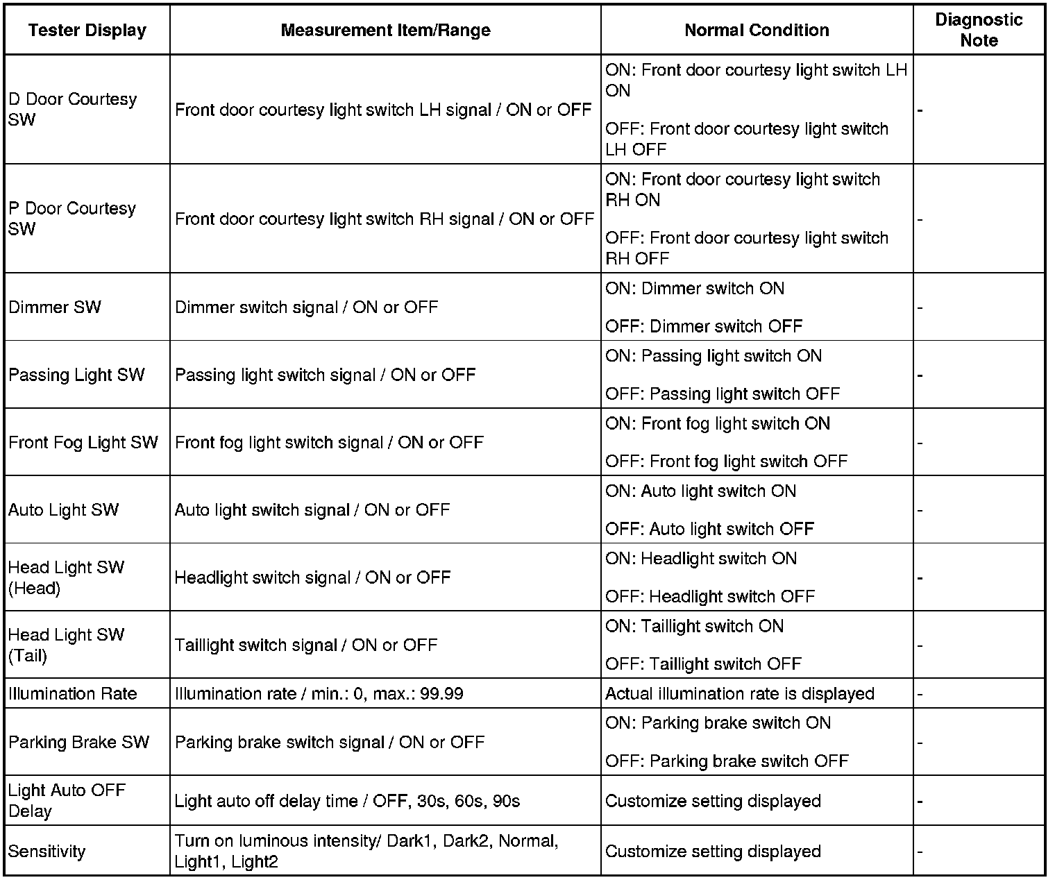 LIGHTING (EXT): LIGHTING SYSTEM: DATA LIST / ACTIVE TEST