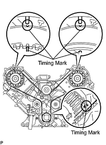 (b) Check that each pulley is aligned with each timing mark as shown in the illustration.