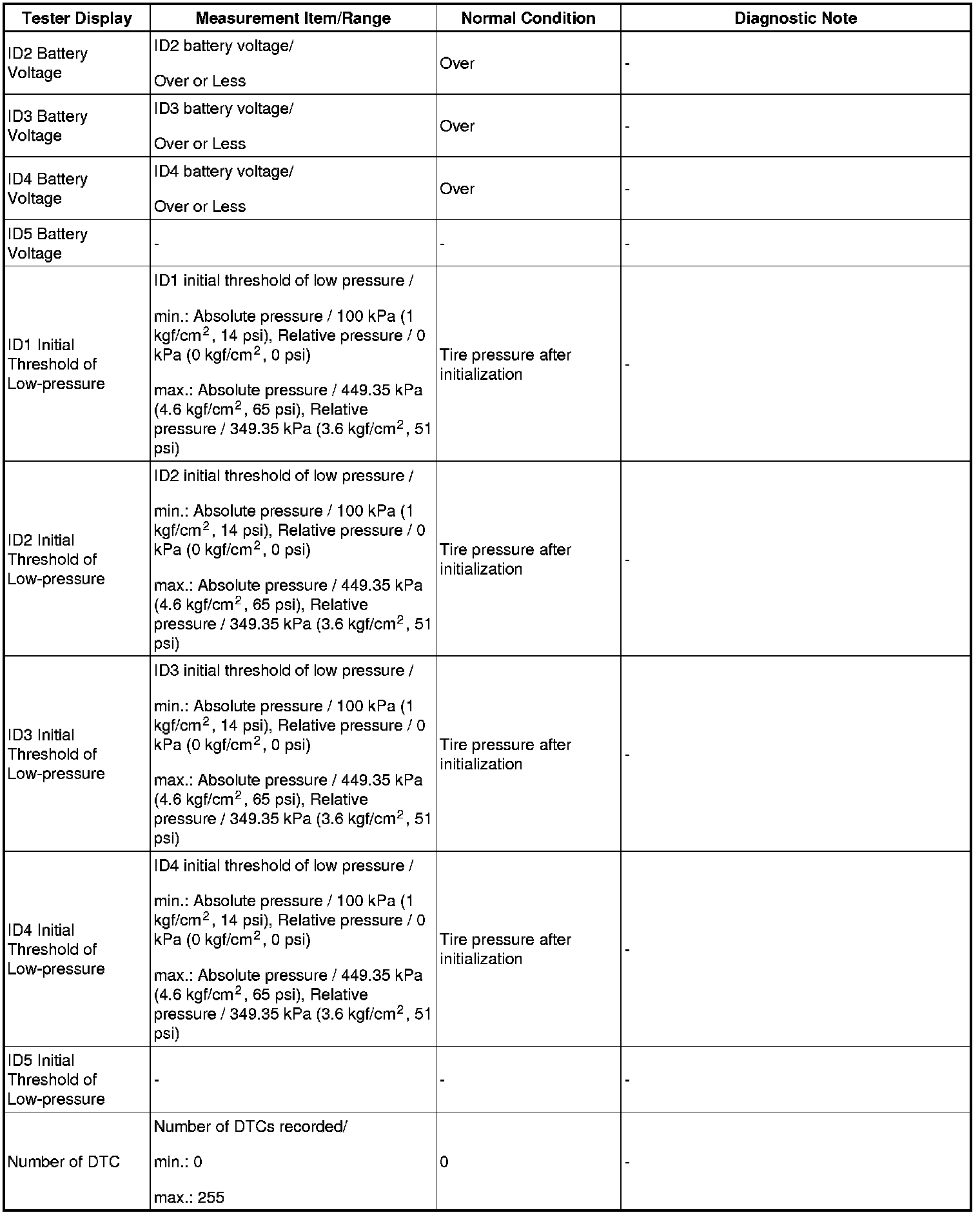 TIRE PRESSURE MONITORING: TIRE PRESSURE WARNING SYSTEM: DATA LIST / ACTIVE TEST