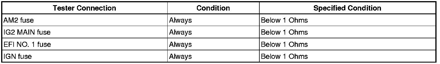 1. INSPECT FUSES (AM2, IG2 MAIN, EFI NO. 1 AND IGN)