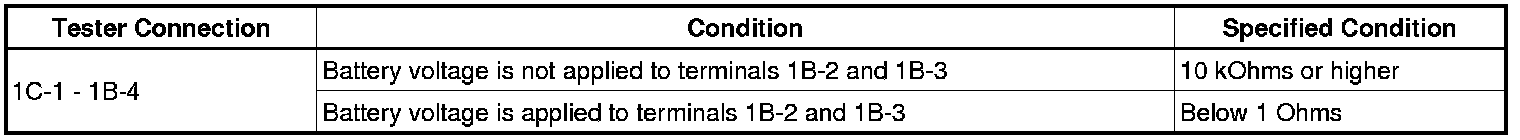 If the result is not as specified, replace the circuit opening relay.