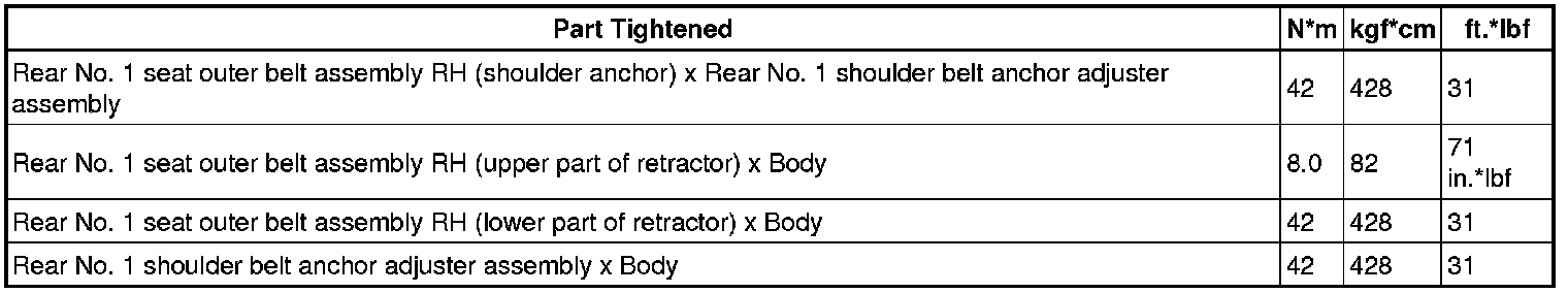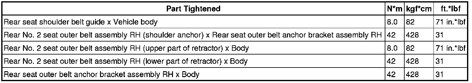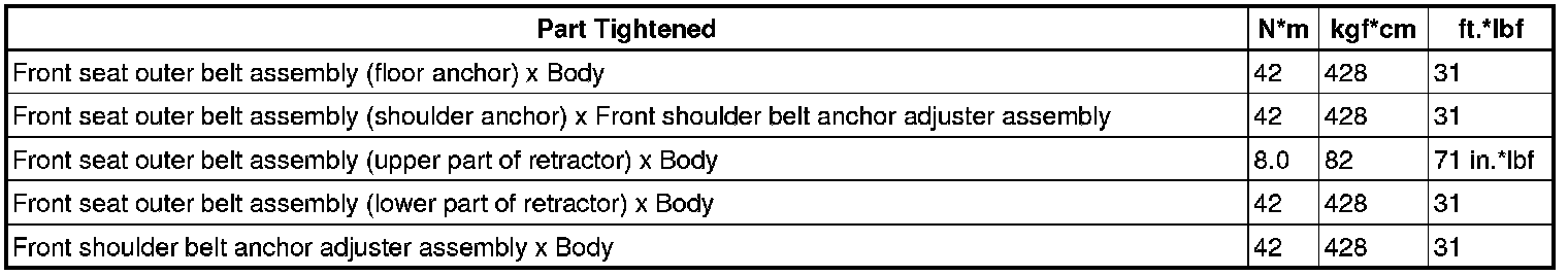 SPECIFICATIONS: SEAT BELT: TORQUE SPECIFICATIONS