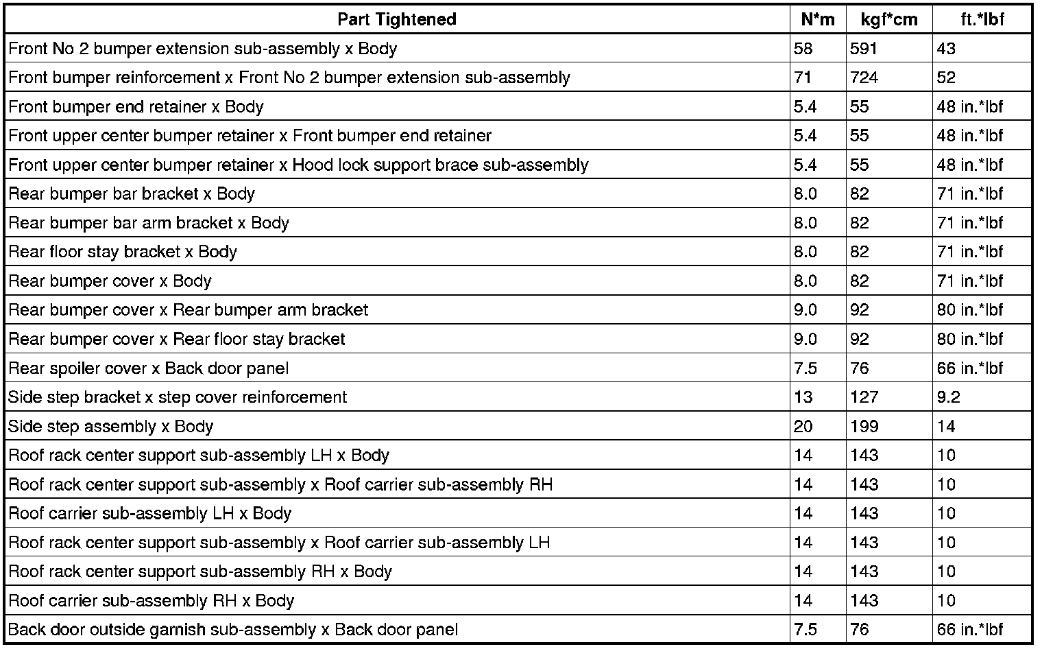 SPECIFICATIONS: EXTERIOR PANELS / TRIM: TORQUE SPECIFICATIONS