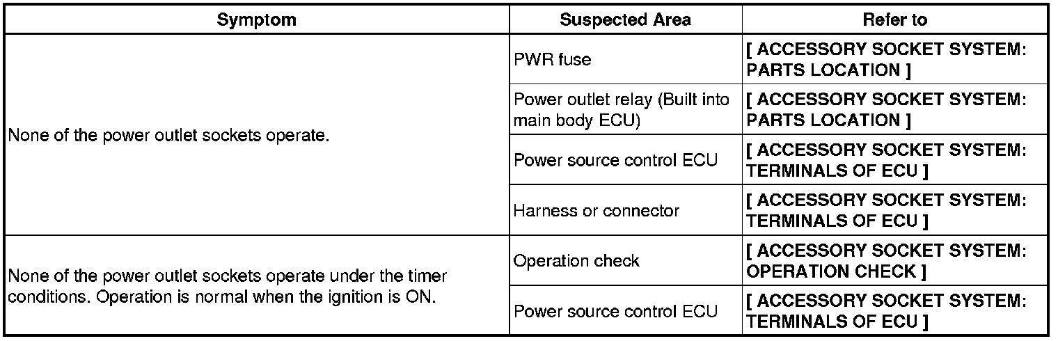 POWER OUTLETS (INT): ACCESSORY SOCKET SYSTEM: PROBLEM SYMPTOMS TABLE