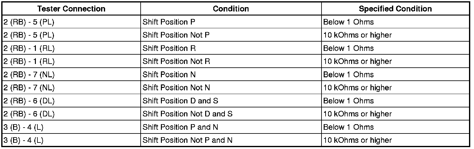 A750E AUTOMATIC TRANSMISSION / TRANSAXLE: PARK / NEUTRAL POSITION SWITCH: INSPECTION