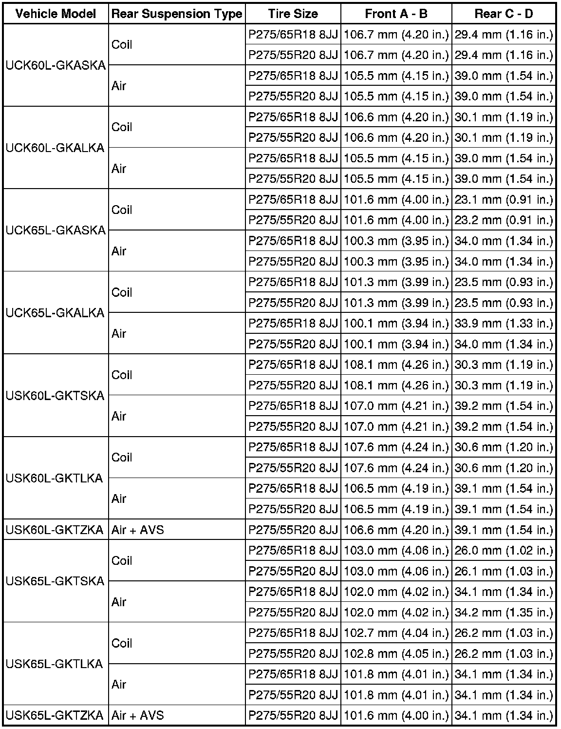 Standard Vehicle Height (Unloaded Vehicle):