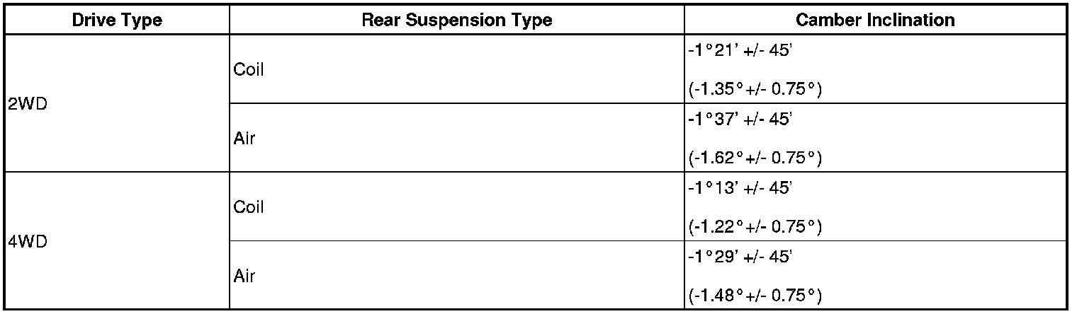Standard Camber Inclination (Unloaded Vehicle):