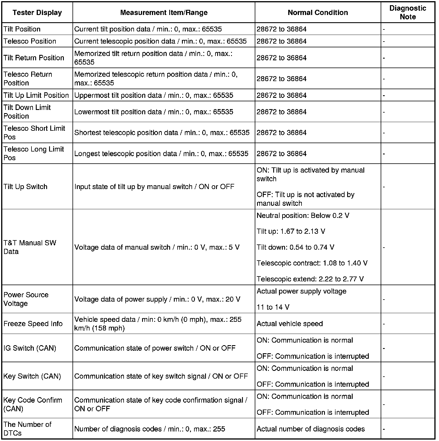 STEERING COLUMN: POWER TILT AND POWER TELESCOPIC STEERING COLUMN SYSTEM: FREEZE FRAME DATA