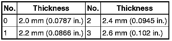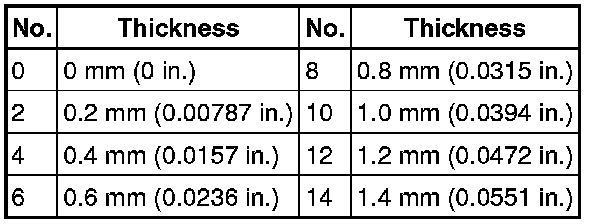 0.8 to 1.1 mm (0.0315 to 0.0433 in.)