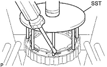 (b) Using SST, install the snap ring.