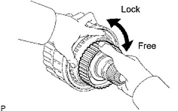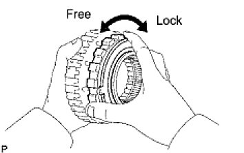 (a) Hold the rear planetary ring gear flange and turn the 1-way clutch. Check that the 1-way clutch turns freely counterclockwise and locks when turned clockwise.