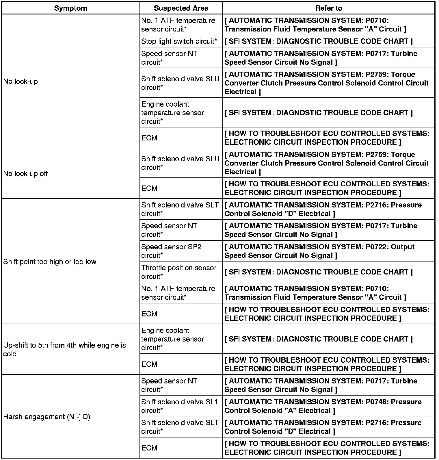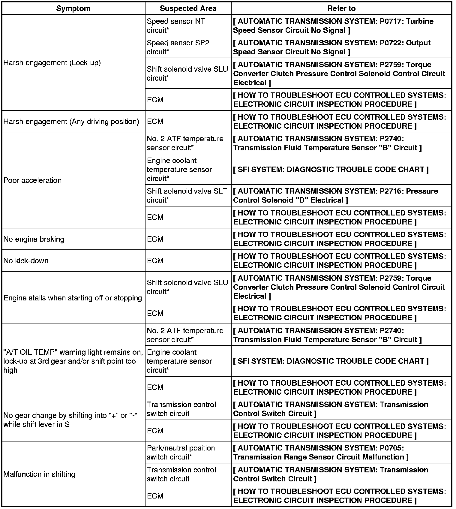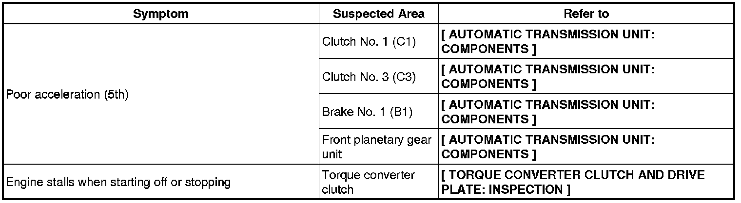 A750E AUTOMATIC TRANSMISSION / TRANSAXLE: AUTOMATIC TRANSMISSION SYSTEM: PROBLEM SYMPTOMS TABLE