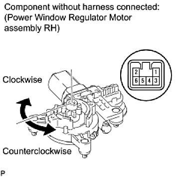 If the result is not as specified, replace the power window regulator motor.