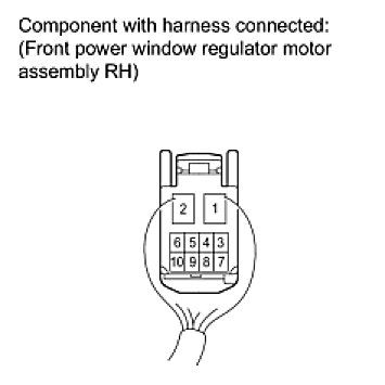 If the result is not as specified, replace the power window regulator motor.