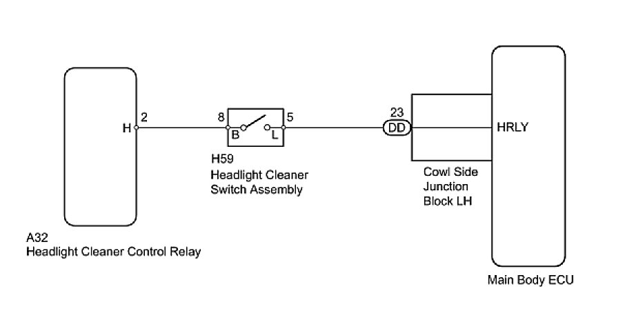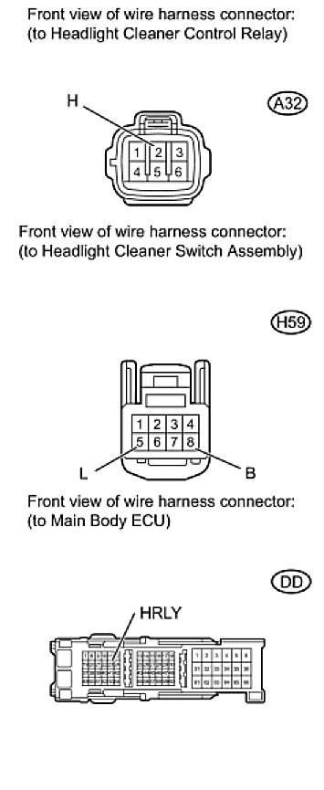 (a) Disconnect the A32 headlight cleaner control relay connector.