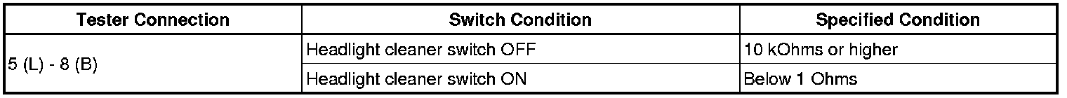 2. INSPECT HEADLIGHT CLEANER SWITCH ASSEMBLY