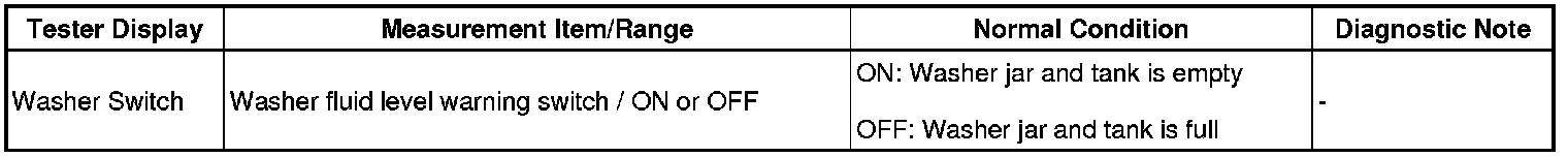 WIPER / WASHER: WIPER AND WASHER SYSTEM: Washer Fluid Level Warning Switch Circuit