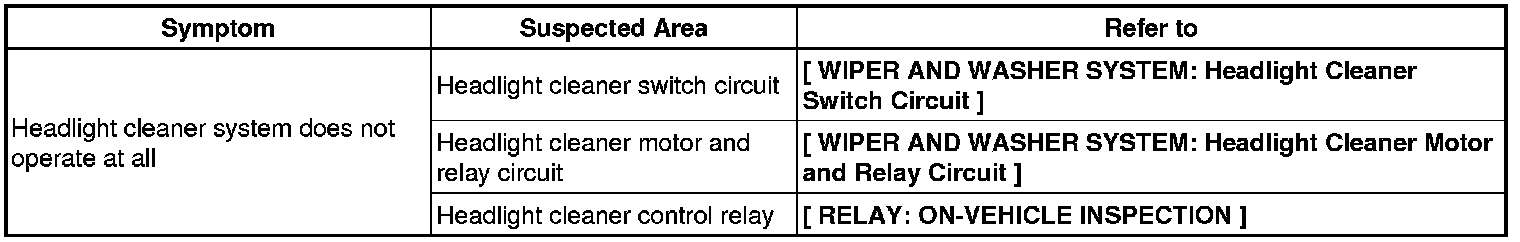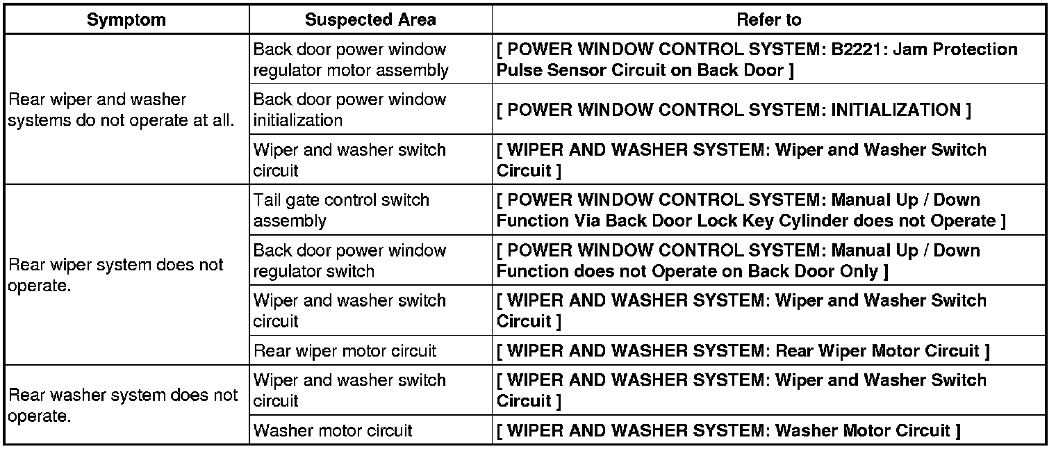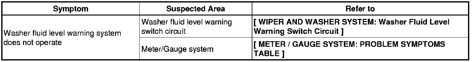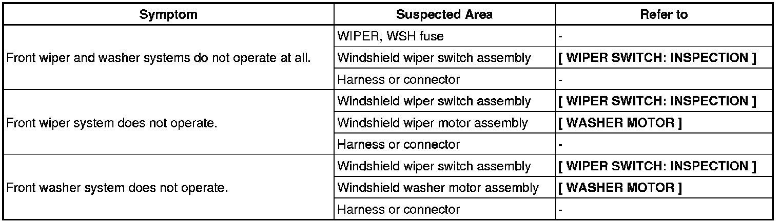 WIPER / WASHER: WIPER AND WASHER SYSTEM: PROBLEM SYMPTOMS TABLE