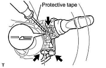(b) Using a screwdriver with its tip wrapped in protective tape, disengage the claw and remove the wiper switch.