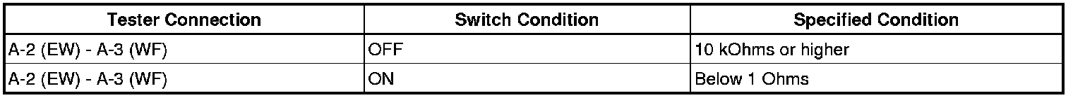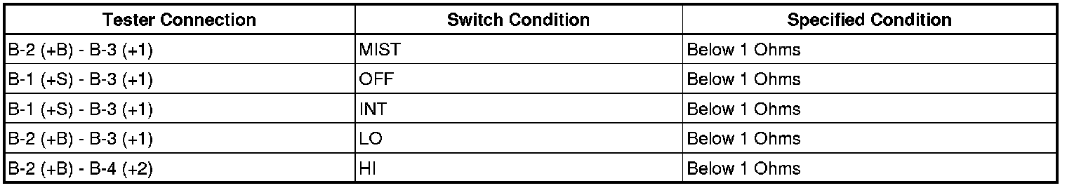 If the result is not as specified, replace the windshield wiper switch.