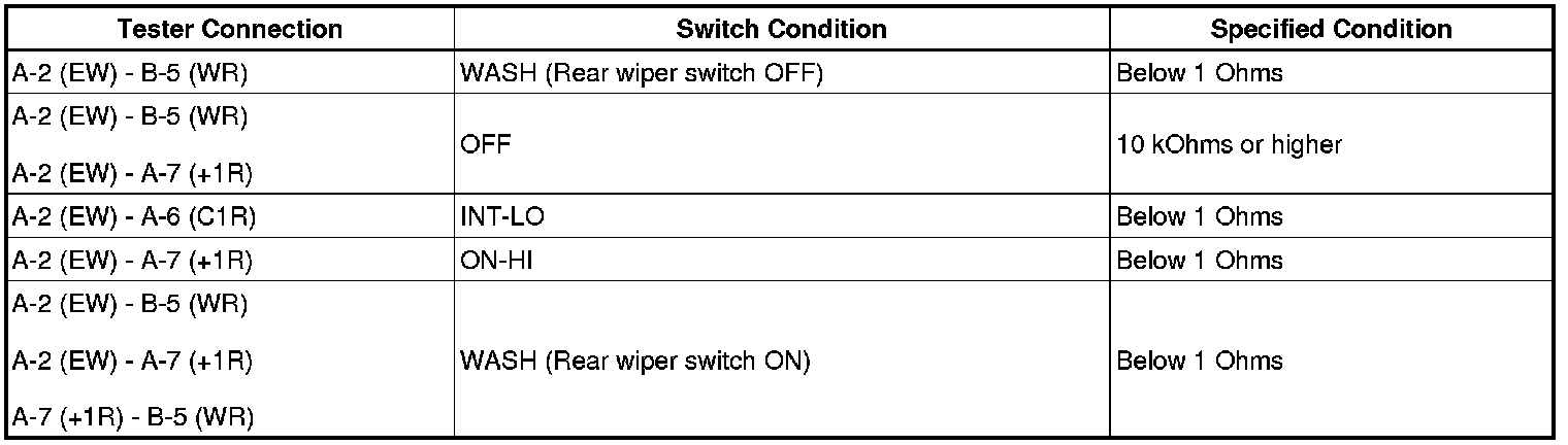 Wiper Switch: Testing and Inspection