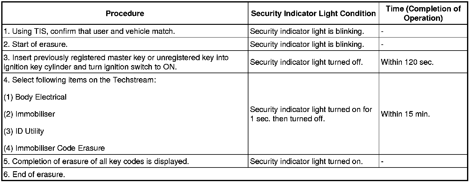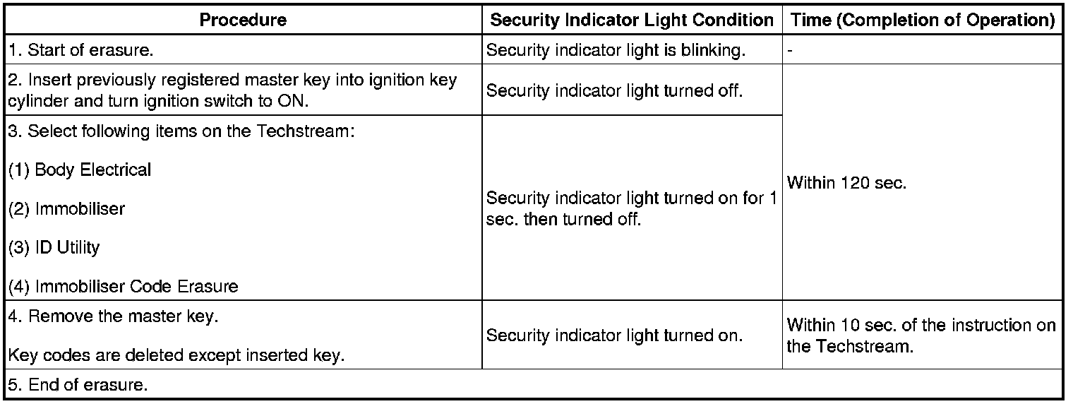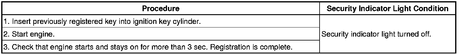 (1) Turn the ignition switch to ON and off 5 times within 10 seconds using a master key that has already been registered.