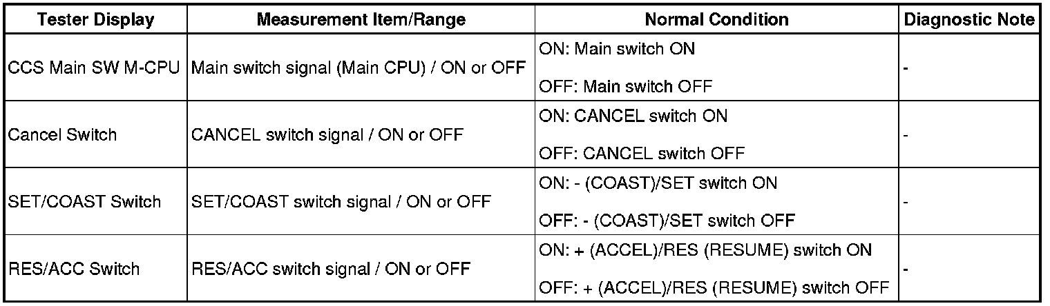 CRUISE CONTROL: DYNAMIC LASER CRUISE CONTROL SYSTEM: Cruise Control Switch Circuit