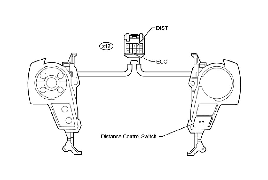 HINT: When a malfunction is detected in the distance control switch, replace the steering pad switch assembly.