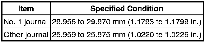 If the journal diameter is not as specified, check the oil clearance.