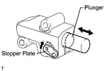 (a) Move the stopper plate upward to release the lock. Push the plunger and check that it moves smoothly.