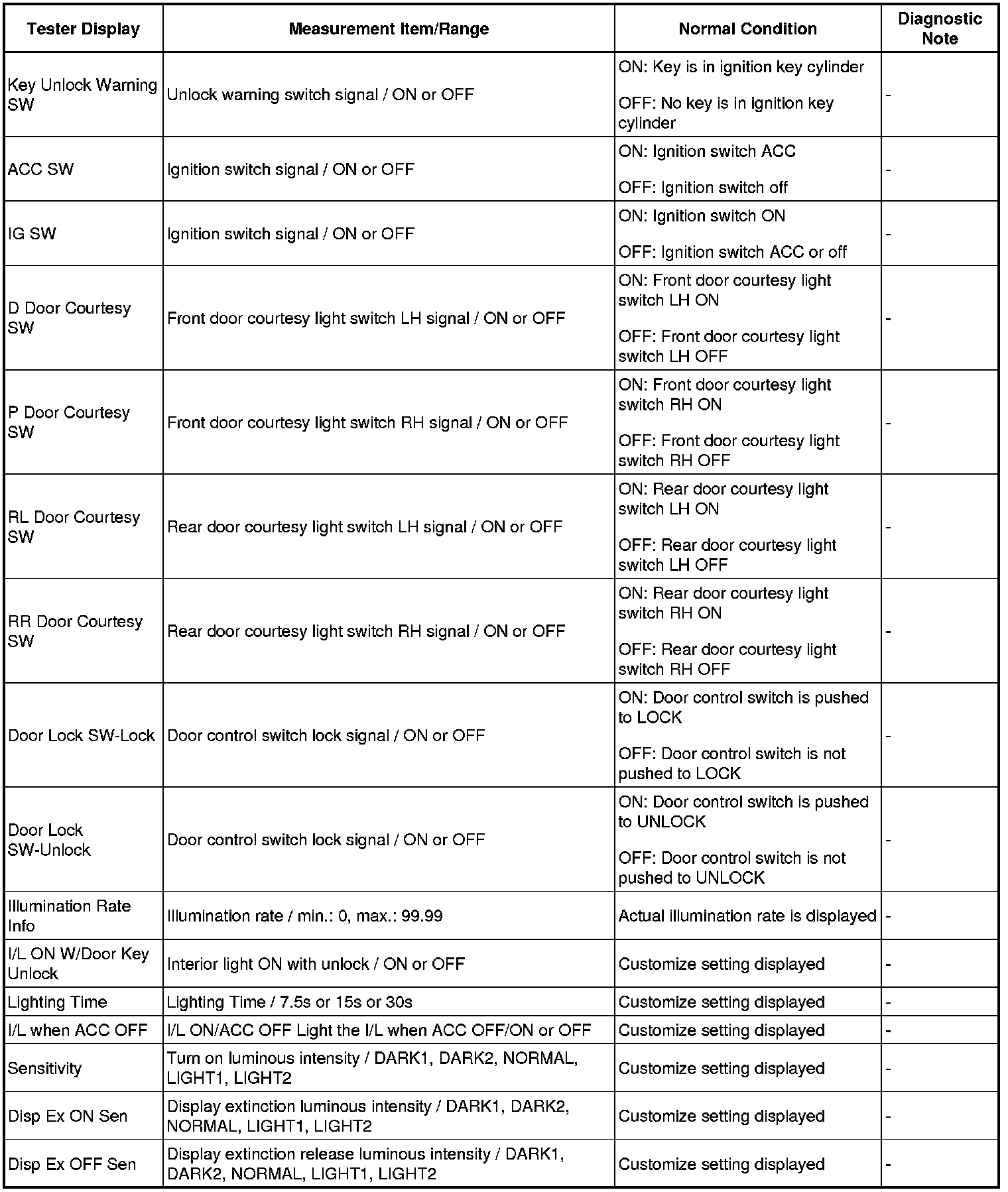 LIGHTING (INT): LIGHTING SYSTEM: DATA LIST / ACTIVE TEST