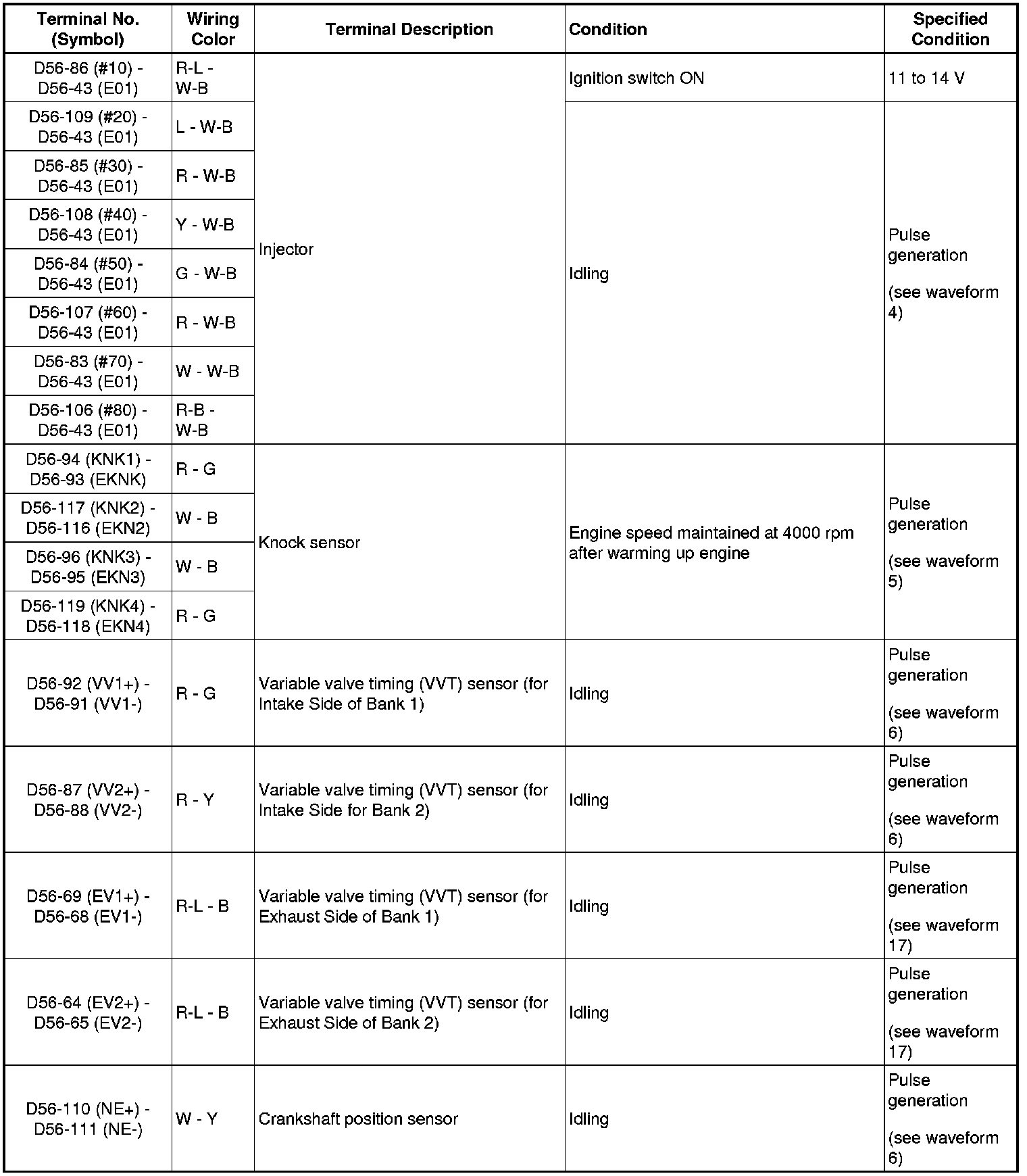 HINT: If the waveform is not similar to the illustration, check the waveform again after idling for 10 minutes or more.