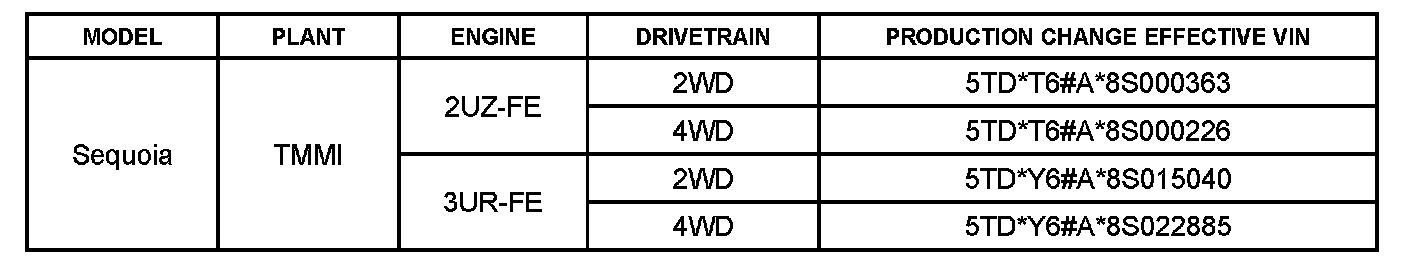 This TSB applies to vehicles produced BEFORE the Production Change Effective VINs shown.