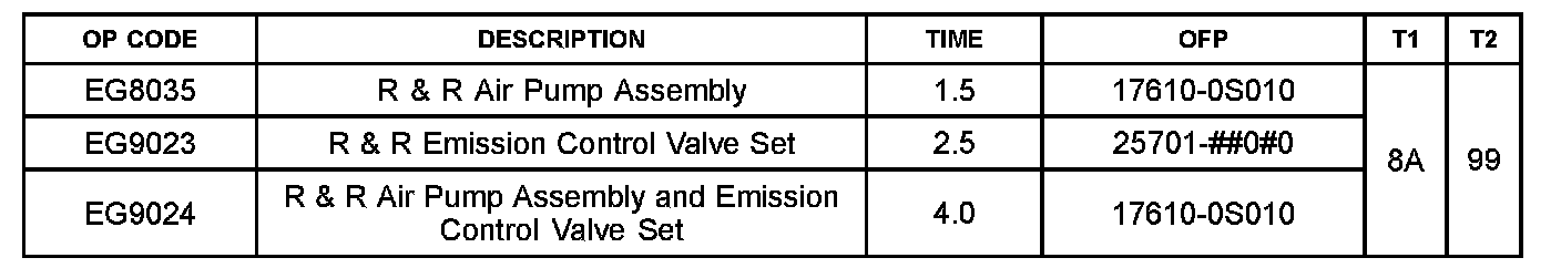 ^ Op Code EG8035 or EG9024: For California specification vehicles sold, registered, and operated in California, Connecticut (starting with '08 MY), Maine, Massachusetts, Pennsylvania (starting with '08 MY), Rhode Island (starting with '08 MY), and Vermont, this repair is covered under the California Emission Warranty. This warranty is in effect for 84 months or 70,000 miles, whichever occurs first, from the vehicle's in-service date.