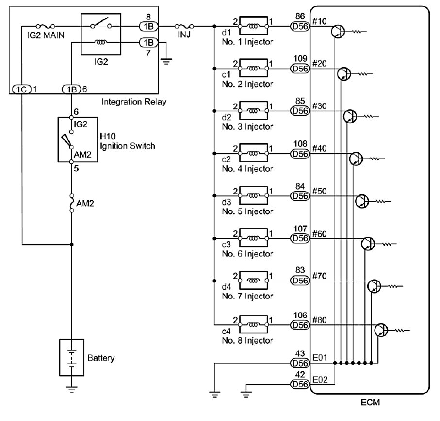 3UR-FE ENGINE CONTROL: SFI SYSTEM: Fuel Injector Circuit