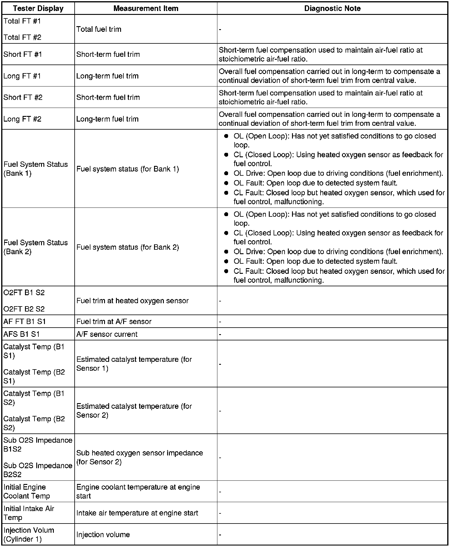 3UR-FE ENGINE CONTROL: SFI SYSTEM: FREEZE FRAME DATA