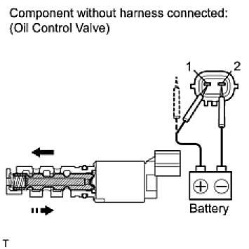 If the result is not as specified, replace the oil control valve assembly. If the valve cannot return properly because of foreign matter, a small pressure leak in the advanced direction may occur and a DTC may be output.